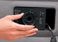 Кровати Intex оснащены мощным встроенным электронасосом. Надувной матрас может быть полностью готов к эксплуатации в течении нескольких минут. Встроенный насос так же способен сдуть кровать.
