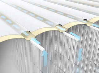 Основное отличие — это внутренние перетяжки, выполненные по патентованной технологии Fiber-Tech. А именно: вместо сплошной ленты ПВХ, прикреплённой через определённые промежутки к соединяемым плоскостям, теперь используется множество независимых упругих волокон, индивидуально закреплённых на линиях соединения. Такая конструкция не только улучшает распределение нагрузки, но и повышает надёжность всей конструкции и способствует увеличению комфорта. Особая структура верхней плоскости также принимает участие в равномерном распределении давления.